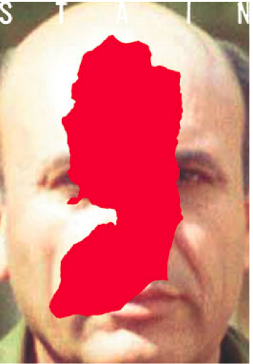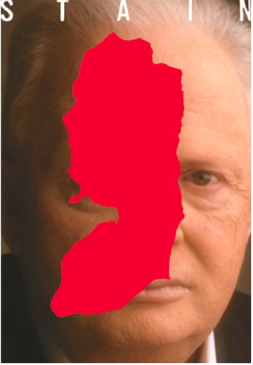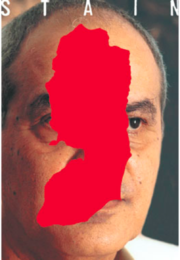 Poster of Theodor Herzl, Zionist theorist of the 19th century. In his signature brazen style, Tartakover layered a map of the West Bank over Herzl's face calling it 'Stain' letting viewers come to their own conclusions about Herzl's legacy.